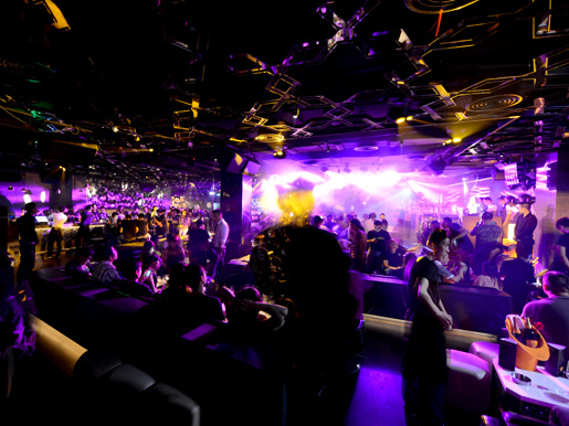 这个1000平米的空间分为三个区域,休闲吧,俱乐部和贵宾包间。大空间内通过一条狭长的舞台分隔,紧邻舞台一侧设有沙发卡座,对另一侧有吧台及高桌。舞池设在中间区域正对着DJ台。Revel在6点到9点放一些安静休闲的音乐,特别为下班后想要放松一下的顾客提供一个舒服的场所。9点以后在劲歌热舞中成为另一片欢腾的景象。