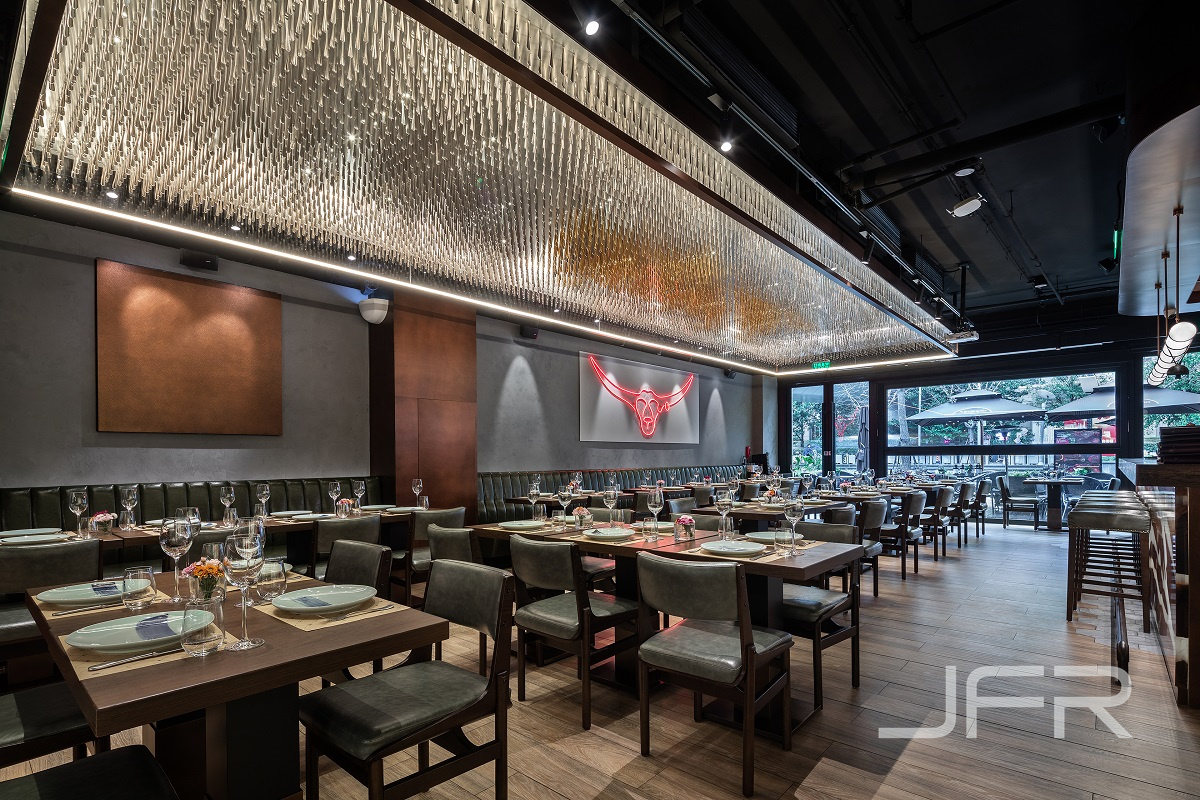 - JFR Studio本次设计的Meatopia餐厅就是向美国西部牛仔那种“热情无畏”的开拓精神致敬,我们将开放的形式和态度与美式风格结合,在美式餐厅林立的上海给肉食者建立一个沙漠绿洲。
