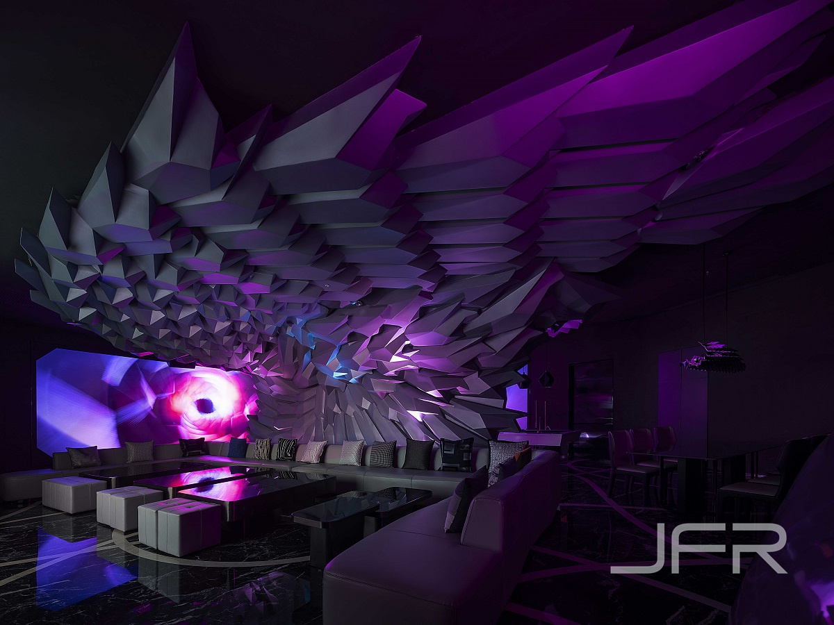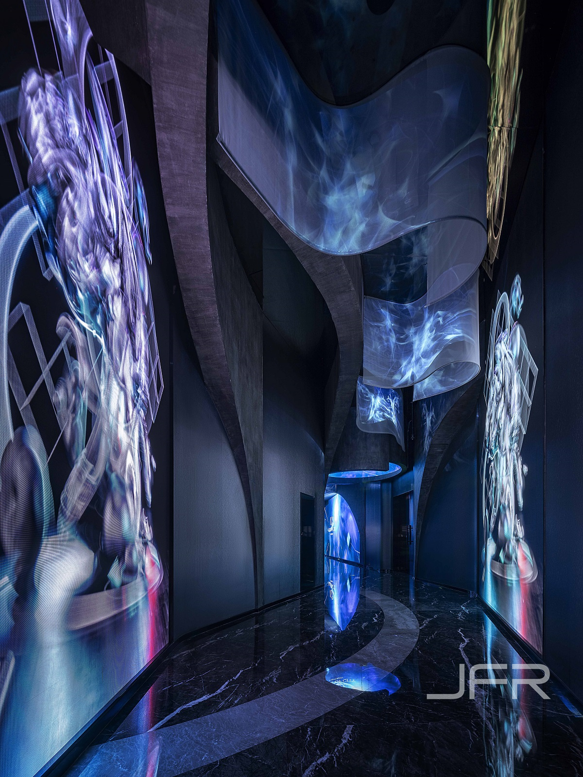 - 利用有机金属表面和动力学机械结构,空间体验成为一个不断变形和转变的过程。各种专业的灯光效果和抽象的视觉动画显示在定制的高分辨率LED面板上,以增强所有的感官和想象力。