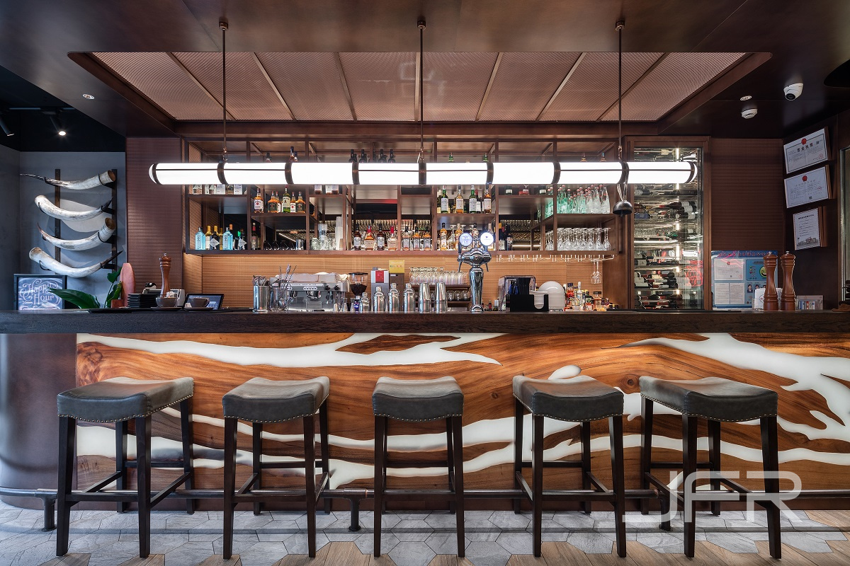 Main materials: bronze metal plate, PMMA, fog surface stainless steel, marble, rubble, black walnut