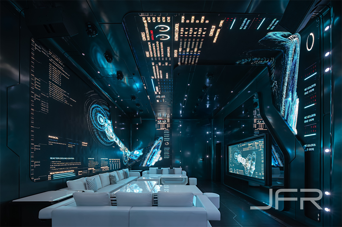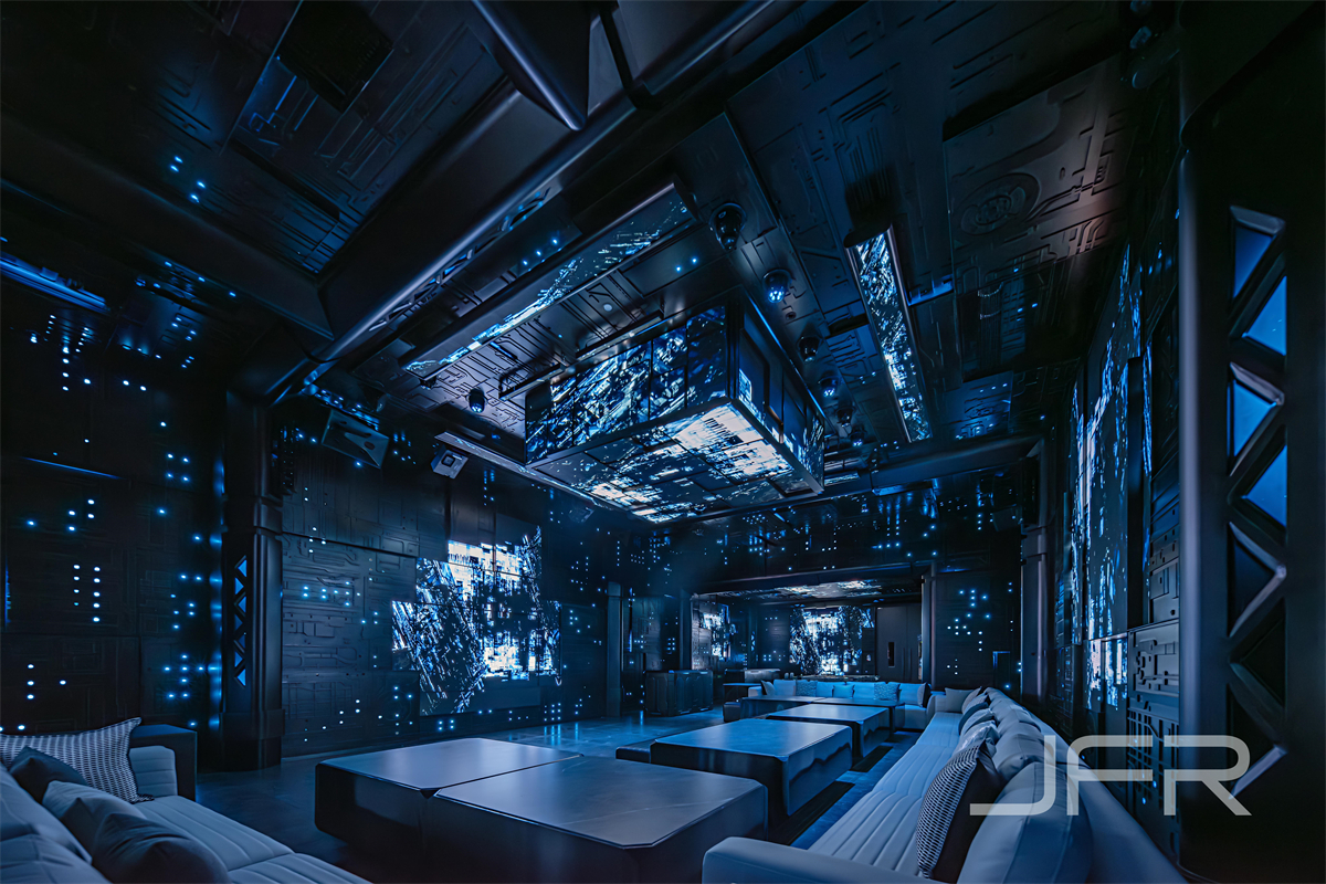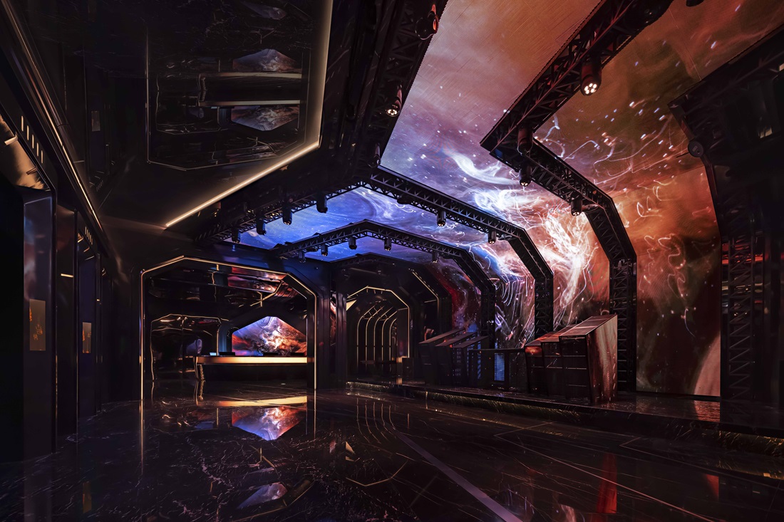 The HTK creative and client teamenvisioned a physical multiverse environment with cutting-edge visuals, such asspacetime abstractions, cosmic phenomena, and warp speed travel. By combiningcomputer-generated imagery and animations on high-resolution LED panels alongwith customized audio resonances, guests can fully immerse themselves ininterstellar expeditions through solar flares, auroras, explosions, andnebulae.